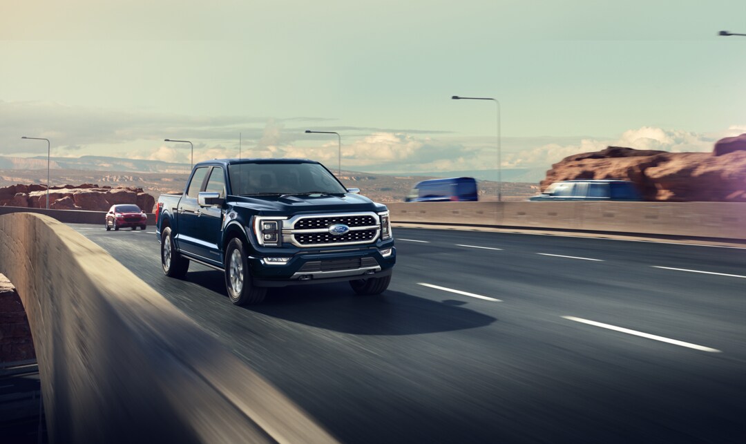 New Ford F-150 trucks are equipped with an Intelligent Oil-Life Monitor® system that calculates oil change intervals as you drive. Depending on usage, operating conditions, and time, you'll receive an alert when the oil and oil filter has about five percent remaining life so you can schedule your next service center visit.